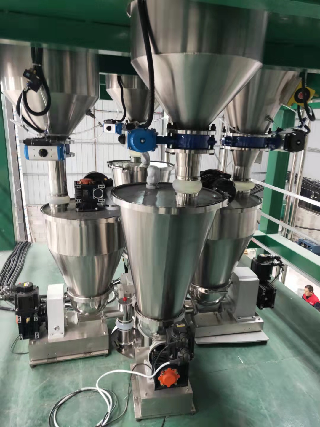 控制雙螺桿輸送機輸送物料按照一定重量輸送,比如500KG/小時或800KG/小時,雙螺桿輸送機下方安裝有重力傳感器