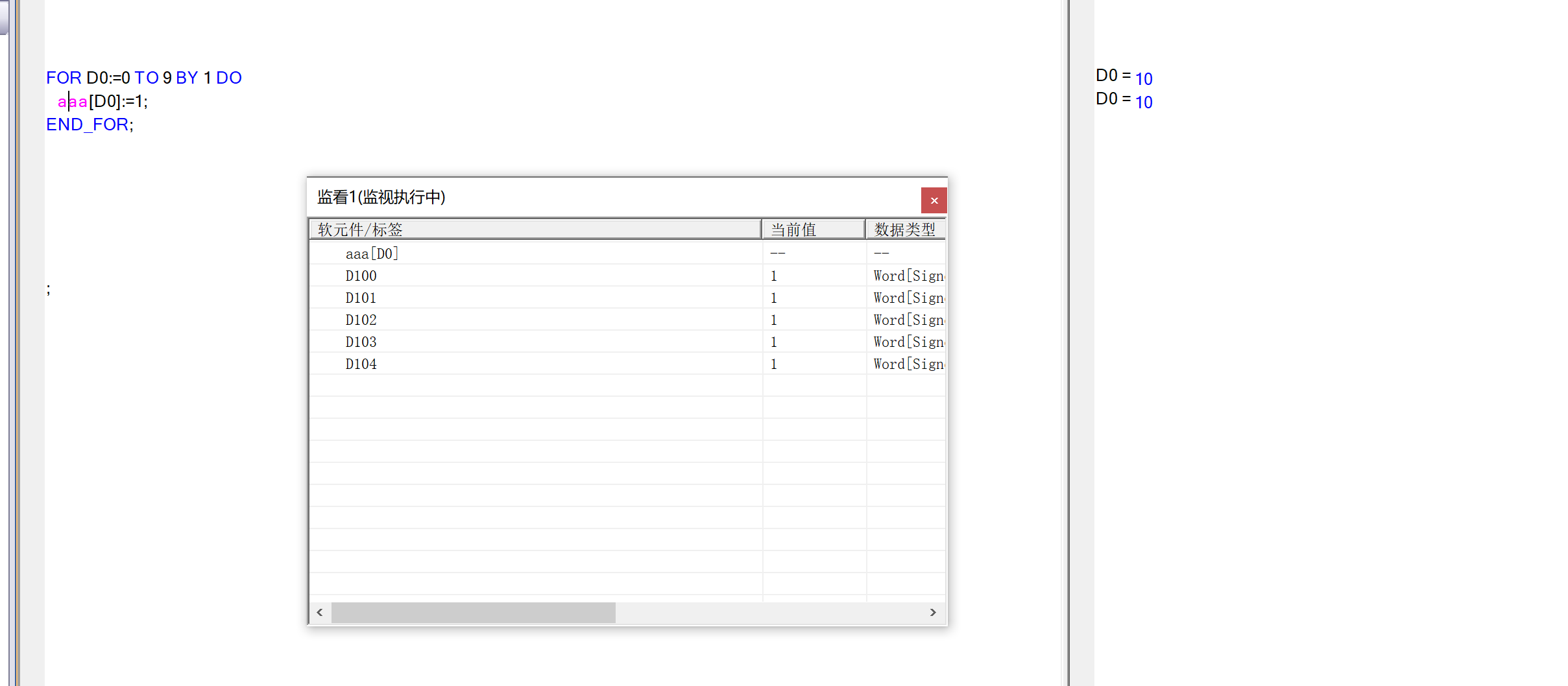 引用引用第2樓cvlsam于2023-01-03 11:41發表的 :FOR D0:=0 TO 9 BY 1 DO switchButton[D0]:=1;END_FOR;.......