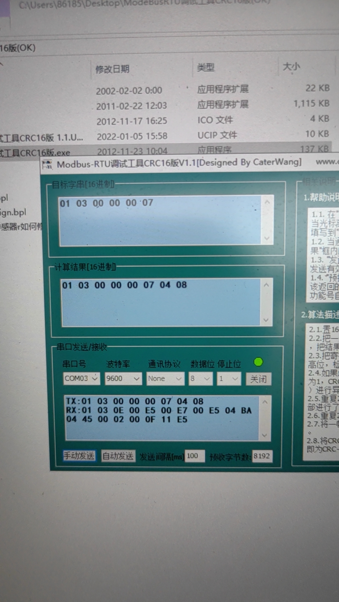 1、用串口調試軟件測試03命令也能讀取到數據(附圖2、3)