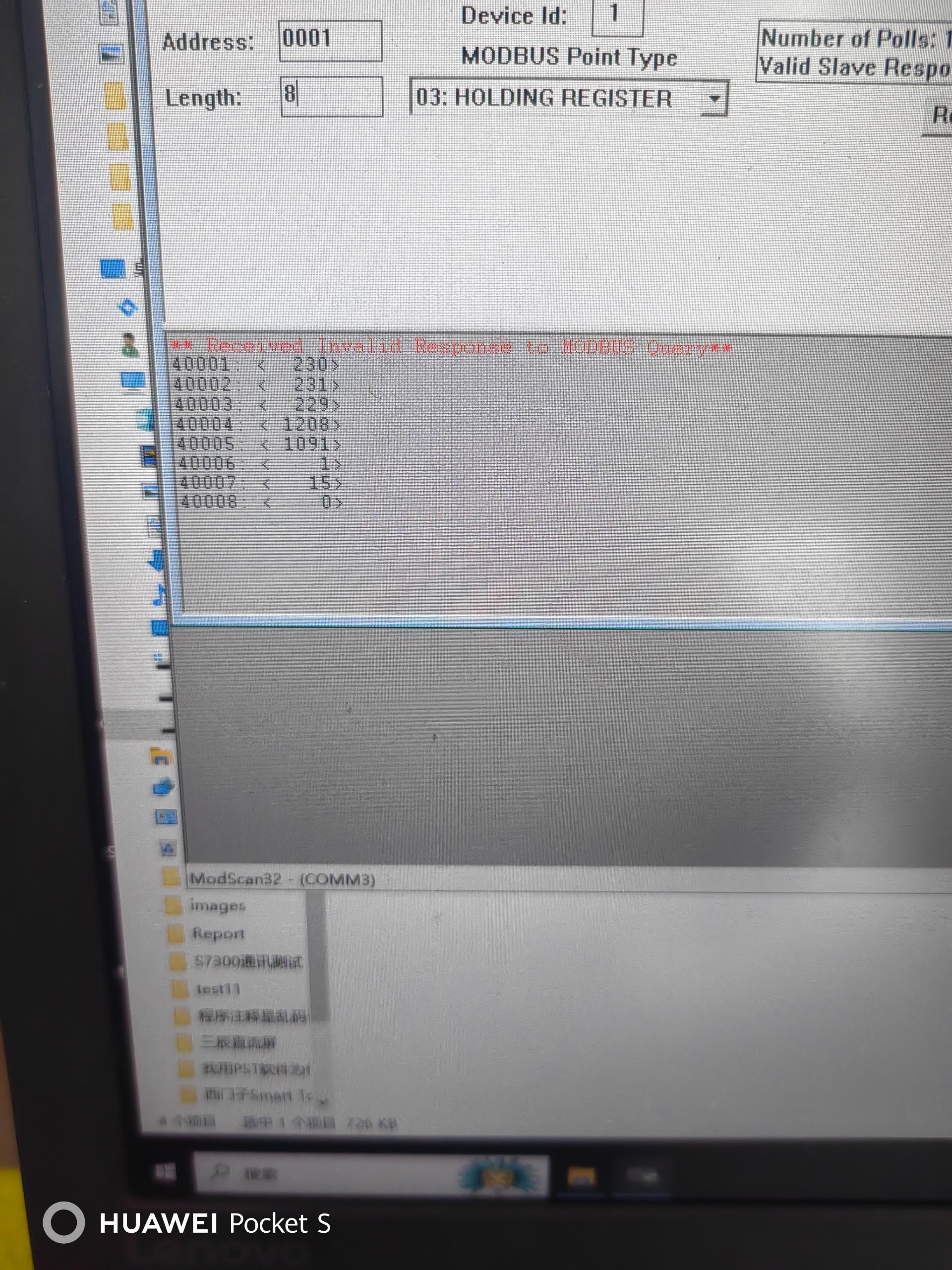 2、用組態王Modbus單個測試40001或40002顯示失敗,單獨做一個測試工程將40001~40007一并可讀取,(儀表的通訊協議是一次讀取7筆,少或多都會導致數據返回錯誤),但加上其它站點時仍舊失。ㄗⅲ赫咎栐O置是正確的,無重復站點)