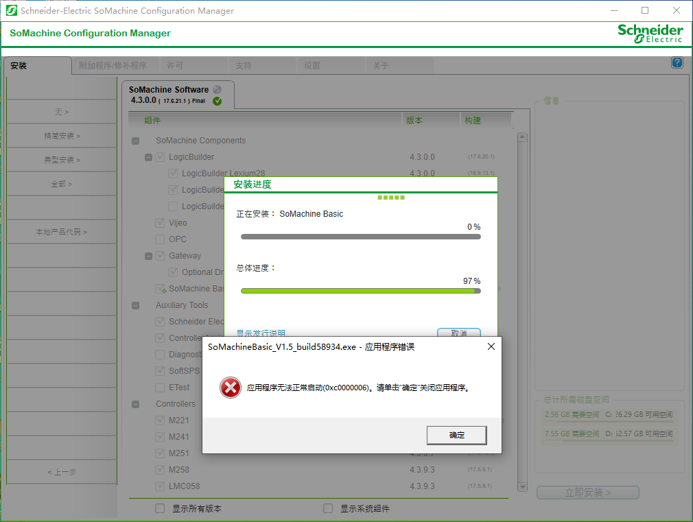 求助SOMachine V4.3的安裝問題,我用官網百度網盤連接下的安裝包,但是最后安裝到SOMachine Basic的時候直接出錯是為啥,有大佬幫忙嗎,我是裝在D盤的,直接在本電腦裝。系統是win10專業版。沒用虛擬機