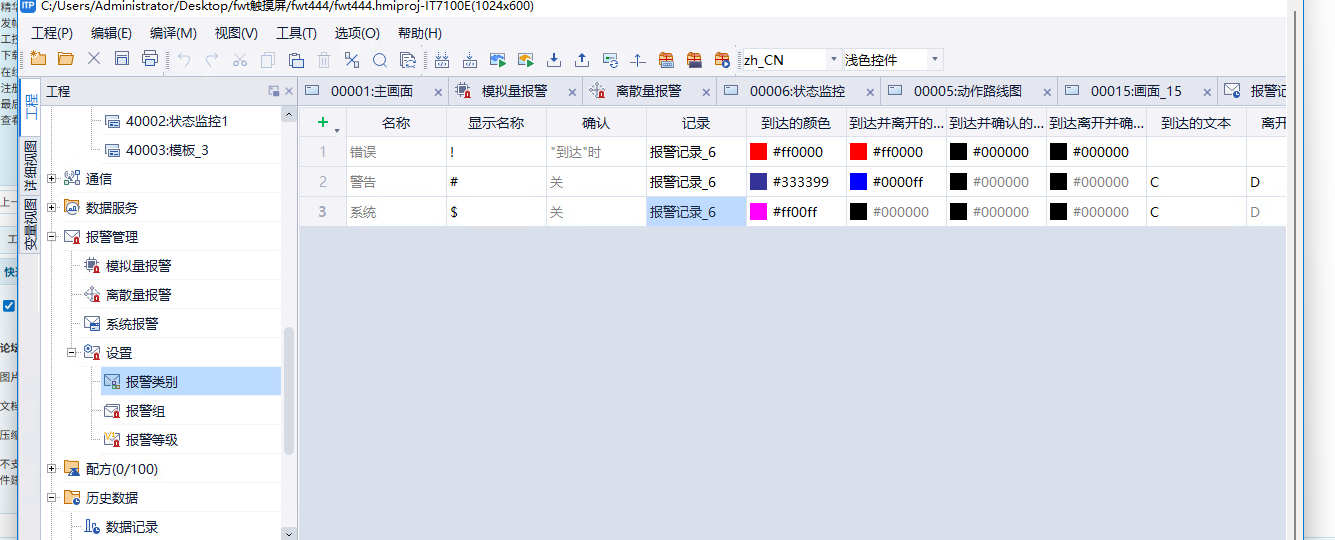 謝謝,正如你所說的已在屬性欄選擇了“報警記錄”,并且右欄中選擇了“報警記錄_1”,產生報警測試時就是不會顯示報警文本內容,沒法記錄。