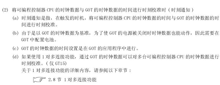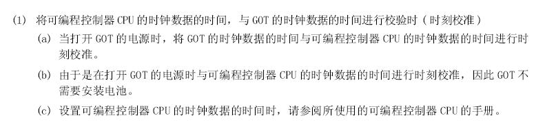 GOT11**本來就有獨立的時鐘功能呀,與PLC的時鐘沒有關系吧。如有的PLC沒有時鐘功能怎么辦?我用的是1150的屏和FX2N的通迅,PLC不用編時鐘程序也能顯示時間呀。是不是所顯示的時鐘數據會自到傳送到PLC的D8013至D8019??