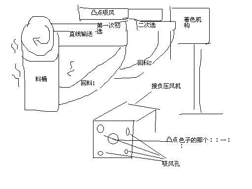 將注塑完的色之放在料桶里,用機械振動的方法將色子輸送成直線,線下陪上帶凸點的吸風盤(只帶一個大點是“一”因為那個凸點壓在其他五個面的時候會有縫隙導致吸風不足從而滑落或掉下),這樣第一面確認動作完成,可能剩下幾個是正確的,在此期間還要將方向不對的色子返回料桶。接下來在做另一面的確認動作,和剛才那個差不多,繼續向前輸送。直到第二面翻轉完成。在通過氣動機構對其著色。