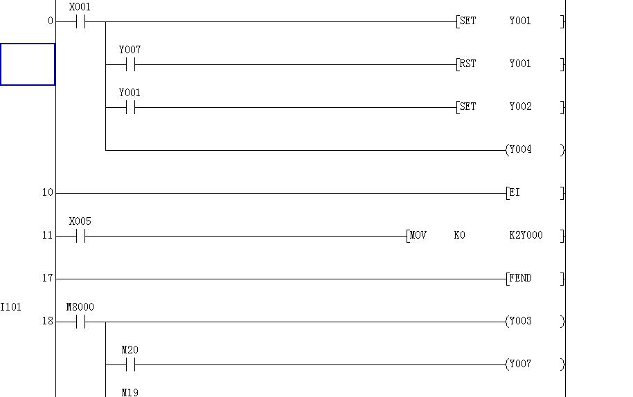 合上x1后 Y1 Y2 Y4持續輸出 中斷只在X1的上升沿執行一個掃描周期