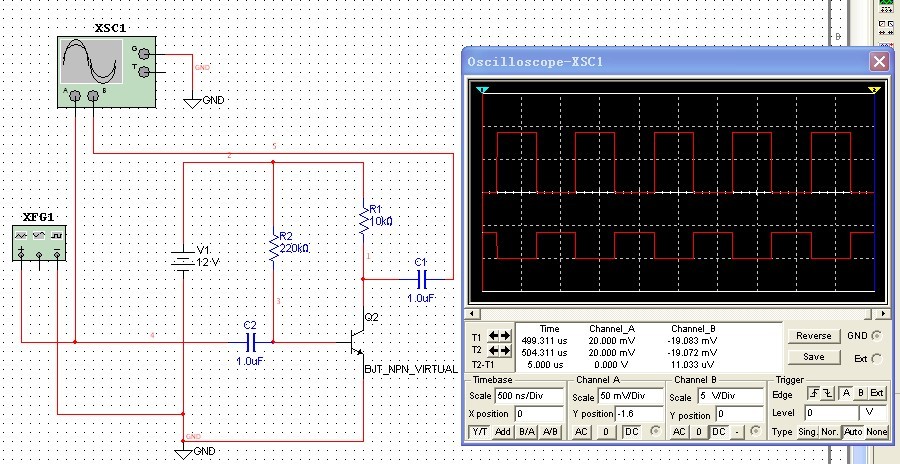 輸入為1MHz的方波,增加結電容c3,c4,c5輸出波形變化,圖中為理想三極管,增加等效結電容。
