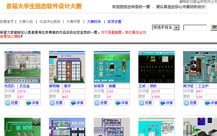 首屆全國大學生紫金橋組態軟設計大賽,正舉行網上投票,下邊是官方網址: