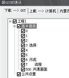 把程序下載到觸摸屏的時候,“畫面”那里沒有打勾.只是顯示GOT------計算機,等電腦里的程序下載完畢后,就變成一個百板.一個字都沒有.