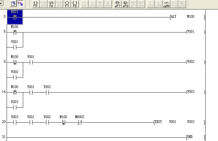 我只想說(shuō)一點(diǎn),兩個(gè)程序都是一樣的效果,按下X0,Y0,Y1,Y2,全部都會(huì)接通然后又全部斷開,再全部接通,然后全部斷開,如此重復(fù)……