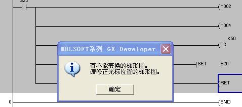 首先樓主應該是用FXGPWIN編的程序,所以RET接在接點后是正確的。但是樓主沒注意狀態編程時取用狀態接點時應該用STL  SXX,而不是LD SXX。