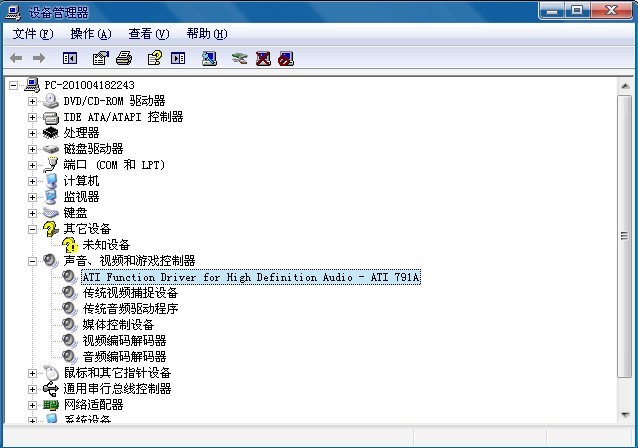 在我的電腦中右鍵屬性進(jìn)入設(shè)備管理器,查看聲音及視頻項(xiàng)再掃描新設(shè)備,顯示AC~97項(xiàng)或是其他軟件(未安裝成功會顯示問號),再插入聲音驅(qū)動(dòng)安裝盤。點(diǎn)擊更新驅(qū)動(dòng),選擇安裝程序位置,點(diǎn)安裝即可!部分如圖所示。。