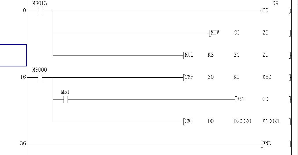 用到的CMP指令的話,比如 CMP S1 S2 M0  ,當S1>S2時候 M0 ON;當S1=S2時,M1 ON;當S1<S2時,M2 ON,就是說總共占3個位,這也是為什么Z1要乘3的緣故