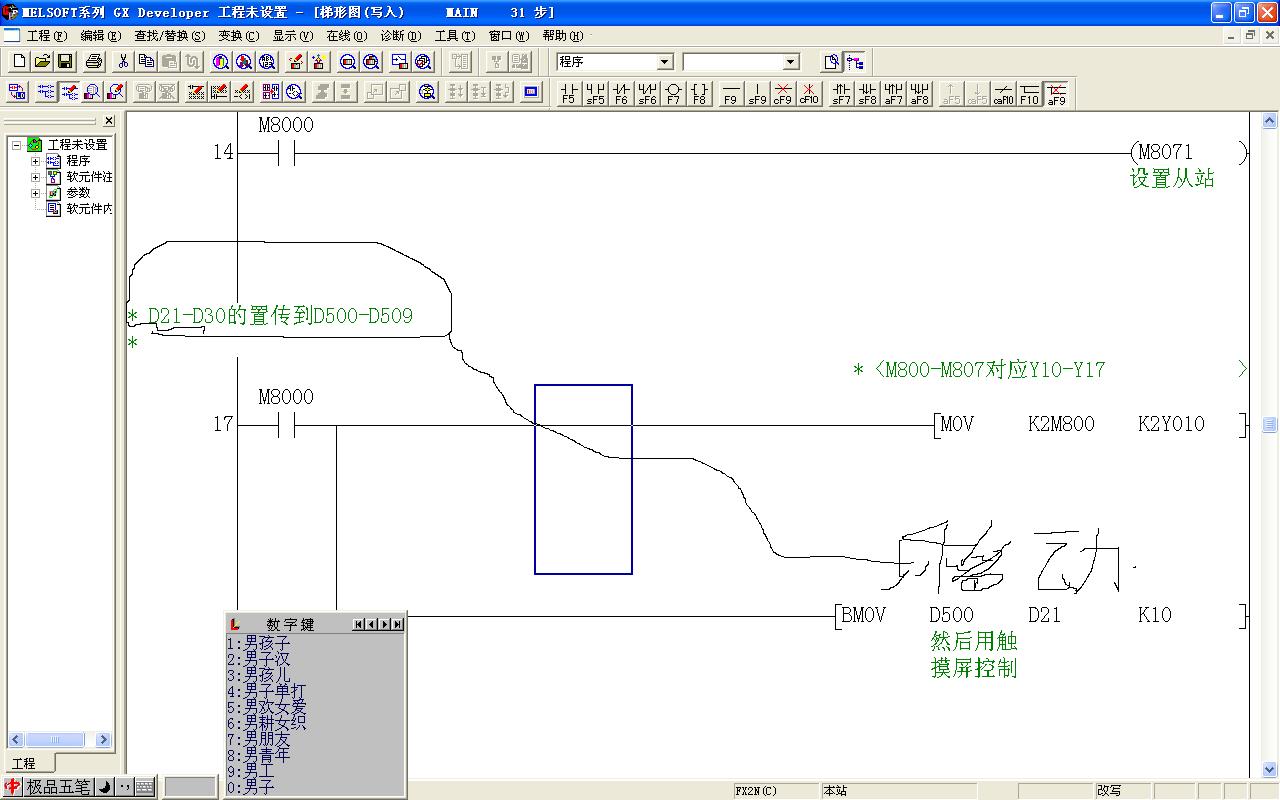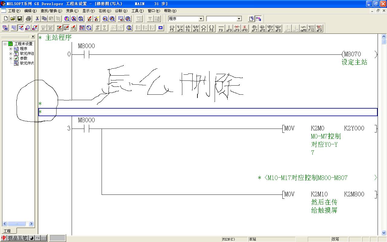 上傳兩張圖片是有關注釋的一個是行間聲明做錯了怎么刪除,我怎么做哪個星號不能刪除.二一個我本來是要在BMOV指令上面做行間聲明的但一做好了后就自動跑到哪上面去了,請問各們應該怎么做?謝謝!!