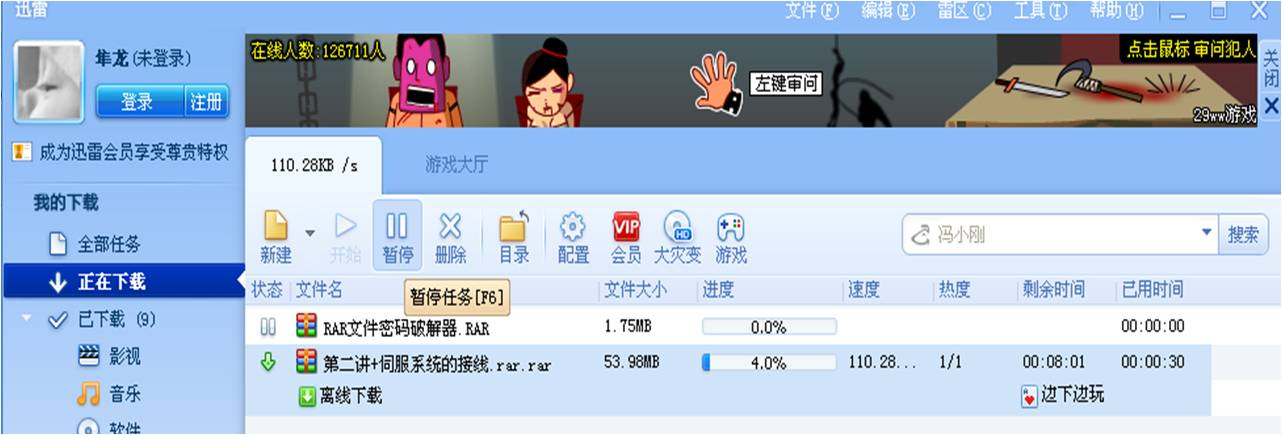 你看看,我剛截的圖,在后面,110K,30秒不到就4%了,速度也不慢啊,剛開始速度不算太快,20K,后來越來越快了,公司限制下載量,我不敢用太多,用超過了,就停止上網(wǎng)了,所以我趕快停了