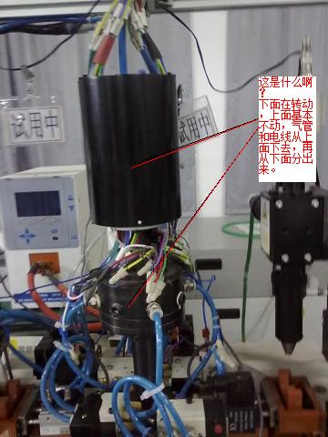 一種特殊用途的旋轉接頭,內部分成好幾層,氣路是經旋轉接頭連接,電路是經電刷和滑環連接。