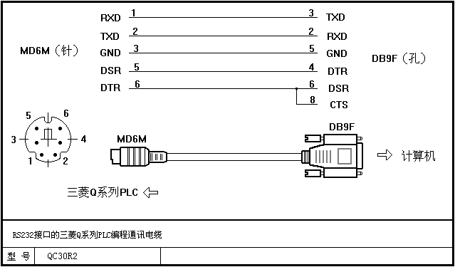 計算機到三菱GT1030-LBD-C 觸摸屏編程電纜