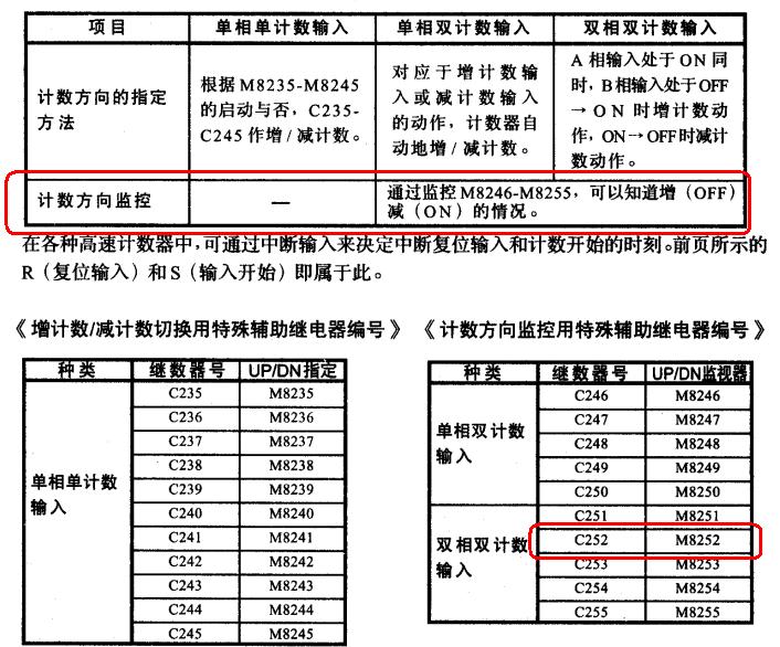 各位師傅們。 我用的編碼器是歐姆龍的E6B2_CWZ6的,600P/R, A相接三菱PLC的X000,B相接X001, 對(duì)應(yīng)的高速計(jì)數(shù)器是C252,要怎么知道編碼器是正轉(zhuǎn)還是反轉(zhuǎn),我知道利用它的相位差90度來辨別,但就是不知道如何下手來編寫,編碼器正轉(zhuǎn)和反轉(zhuǎn)的狀態(tài)要顯示在觸摸屏上,以方便知道電機(jī)轉(zhuǎn)動(dòng)的方向,還有編碼器轉(zhuǎn)過的角度也要顯示,望師傅們指點(diǎn)一二,不勝感激,說出你們心中的想法,還有我看到有一些例子,例如,LD M8000 0UT C252 K3000,這個(gè)3000是不是給編碼器的計(jì)數(shù)值,如果高速計(jì)數(shù)器計(jì)到3000,如果不復(fù)位的話,它會(huì)不會(huì)停留在3000這個(gè)數(shù)字上,還是從3001計(jì)數(shù)下去,或是從0開始計(jì)數(shù)。還有Z 相具體要怎么用