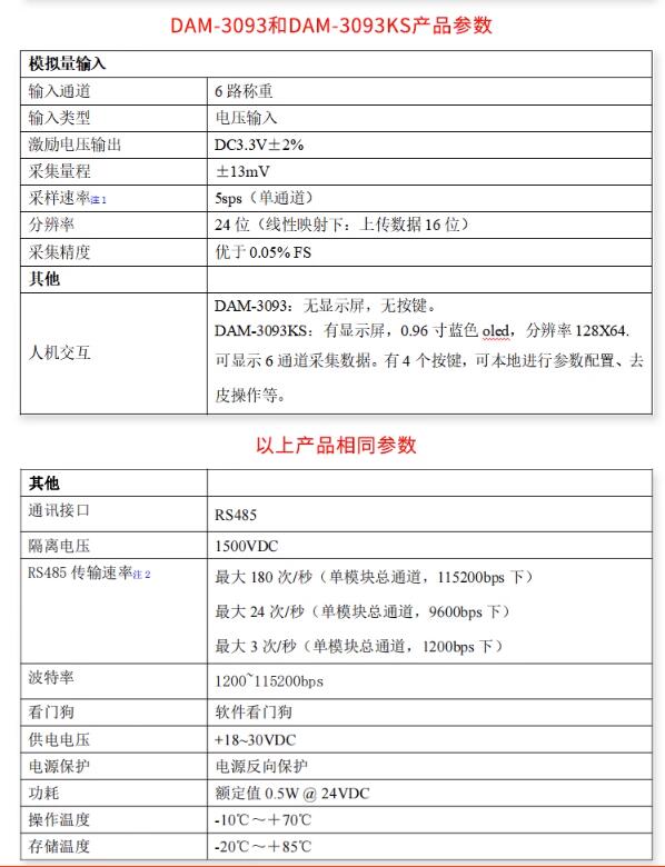 DAM-3093和DAM-3093KS為6路稱重輸入,支持RS485通訊接口,使用標準ModbusRTU協議。DAM-3093KS在DAM-3093基礎上增加OLED顯示屏和按鍵,可脫離電腦單獨使用,配備良好的人機交互界面,使用方便,性能穩定。