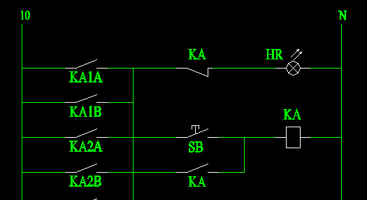想實現這樣一個功能:KA1A是一報警信號,當它閉合時,HR報警。按SB后,取消報警。