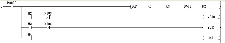 哪位好心的大俠指導(dǎo)下,我這個(gè)區(qū)間比較指令為什么會(huì)沒有輸出?D593是模擬輸入量數(shù)據(jù)寄存器,10ADC,模擬輸入量用的是直流0-5v的電壓,對(duì)應(yīng)于0--1023。我現(xiàn)在假設(shè)當(dāng)<0.3v時(shí)線圈y0有輸出,0.3v--0.5v時(shí)y1有輸出,>0.5v時(shí)m5輸出。