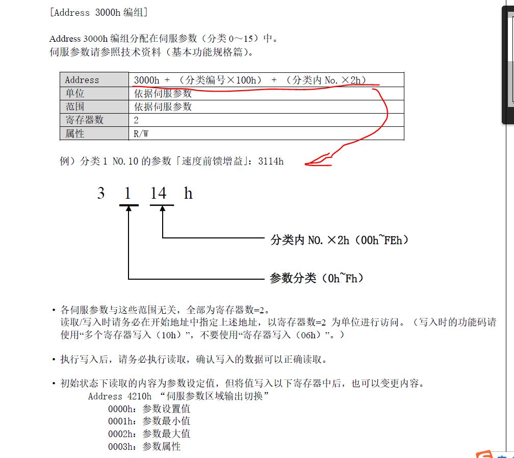 引用引用樓主520apple于2019-11-12 10:17發表的 松下A6伺服MODBUS通訊 :根據圖片松下A6伺服MODBUS通訊地址換算,按著說明書來(3000h + <分類編號X100h> + <分類內No. X 2h>)PA01 10參數,算出等于3120H,怎么算不到3114H,這怎么回事,各位大神請教下,謝謝!