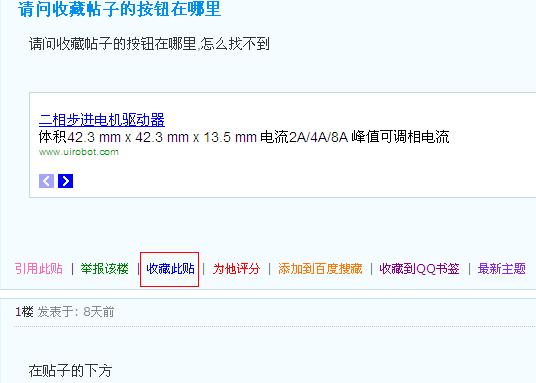 請問收藏帖子的按鈕在哪里,怎么找不到
