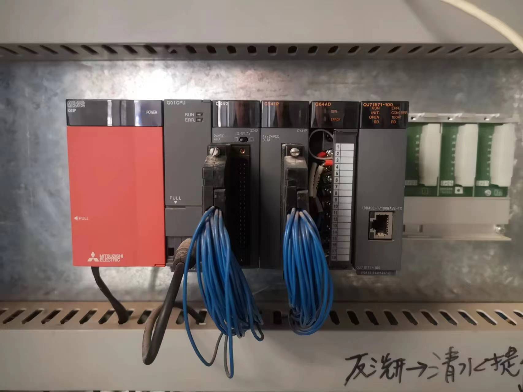 舊設(shè)備改造項(xiàng)目,設(shè)備為污水處理設(shè)備。PLC為三菱Q61P和三菱觸摸屏,有AD