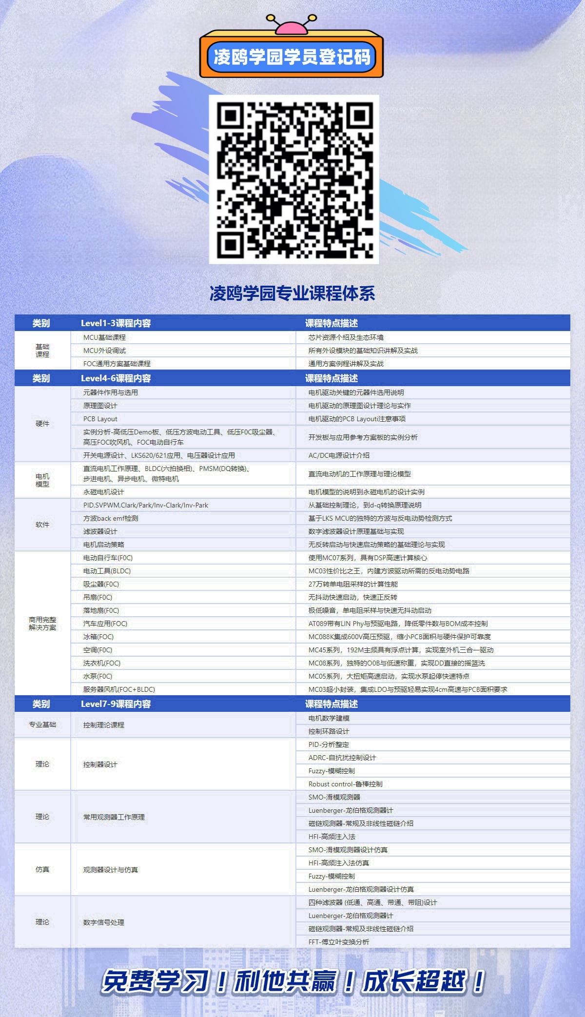 讓我們以嶄新的姿態,在電機控制的廣闊海洋中乘風破浪,共同書寫輝煌篇章!凌鷗學園,與您并肩前行,共創美好未來!立即報名,開啟學習之旅!