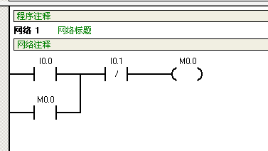 編了個程序:I0.0為啟動,I0.1為停止,驅動M0.0的啟保停的程序。