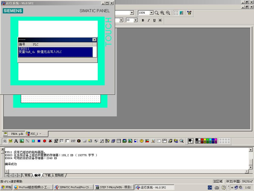 在PC機上運行的ProTool Pro RT版為何總提示"變量VAR1:無法寫入PLC"。另PLC和PC是用USB-PPI電纜通迅的,且能正常上載\下載程序的。