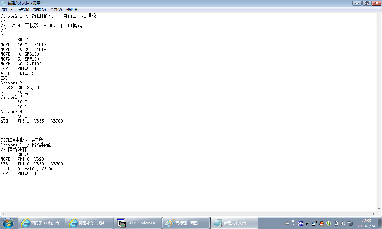 各位老師 我問(wèn)下西門(mén)子200PLC與掃描槍485通訊成功,但不知道為什么讀出來(lái)的數(shù)據(jù)不對(duì) .掃描槍的通訊協(xié)議是:波特率為9 600 bps,8位數(shù)據(jù)位,1位停止位,無(wú)效驗(yàn)