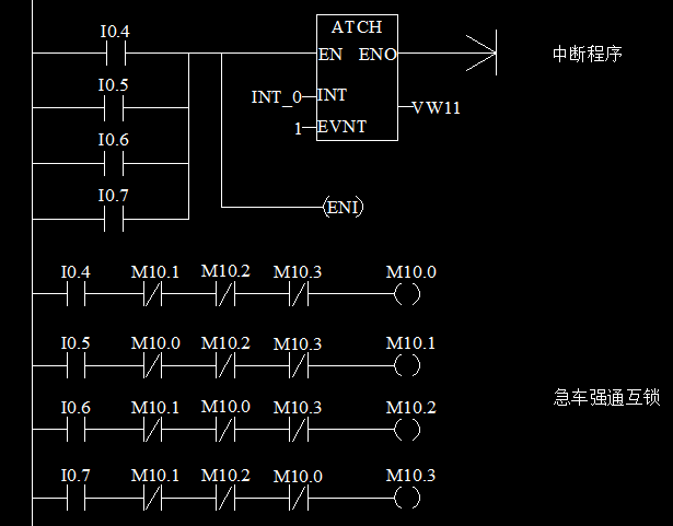 你木有理解中斷程序的原理,建議看一下s7-200系統(tǒng)手冊,中斷程序章節(jié)。