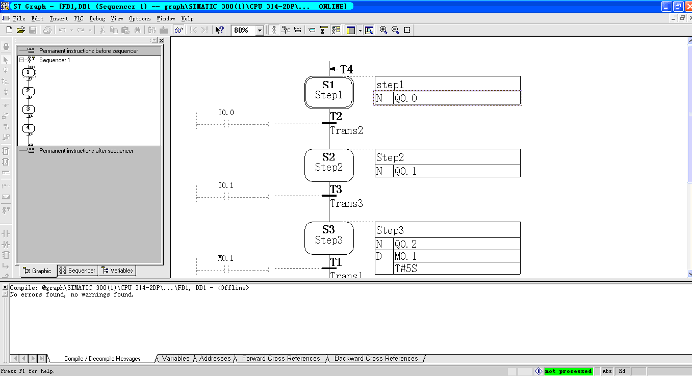用300plc仿真軟件仿真graph編寫的程序,仿真不了各位大蝦幫我看看是什么地方的問題