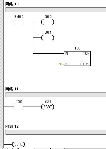求指教,這個程序用仿真器仿真后只能顯示Q0.0和Q0.1同時為“1”的5秒時間,是順序控制不能存在同樣的輸出點(Q0.0)還是仿真器自身缺陷。