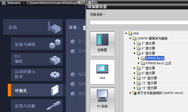 `我現用的WinCC flexible 2008中通訊設置設備類型中找不到KTP600的型號,可是能找到KTP1000。請師傅們賜教