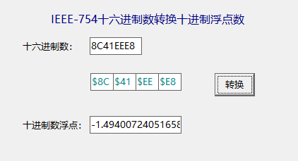 使用IEEE 754規范,如顯示不正常可進行 字節順序 交換位置即可。如下: