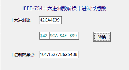 十六進制數418CE8EE就是浮點數17.613735  十六進制42CA4E39浮點數就是101.152779