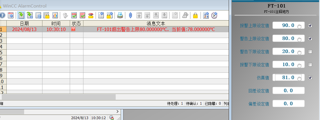 在wincc報警中,用布爾量報警,在消息文本需要關聯過程值,發現過程值不是觸發報警的值,而是觸發報警的前一個值,例如80報警,實時值從78跳躍到81時,報警文本關聯的過程值是78,而不是81,但是在限制監視里面觸發報警,過程值3就是實時值,不知道布爾量報警為何是這種情況。