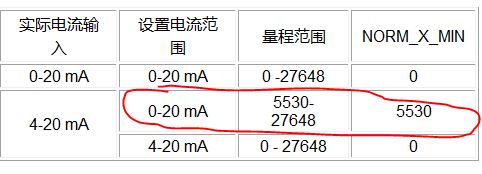 這個(gè)要看你組態(tài)模擬量模塊下選的是電流范圍是4...20還是0...20,如果組態(tài)的是4...20和你的實(shí)物一致,MIN是以0開(kāi)始的,如果選的是0..20和你的實(shí)物不一致,MIN是以5530開(kāi)始的,不管選的組態(tài)是哪一個(gè),MAX為27648, 建議你用的時(shí)候測(cè)下零點(diǎn)是多少,對(duì)比下,一般都會(huì)有波動(dòng),要加偏差校正 |