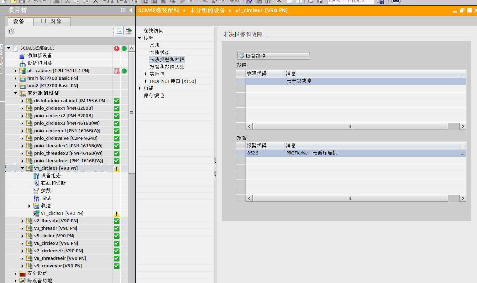在博圖V20中,使用PLC X1口串聯(lián)了8個(gè)V90 PN,全部連接OK后,只要一斷電重啟,第一個(gè)V90 PN必報(bào)8526,后面7個(gè)V90是正常的,再次分配第一個(gè)V90的設(shè)備名稱后,在線監(jiān)控顯示連接OK,無(wú)解。。。