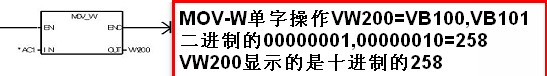 VW100=VB100,VB101(西門子的字元件低8位在前VB100.7,VB100.6,VB100.5........)