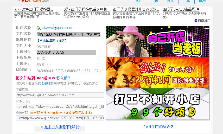 http://wlwwlw.qupan.com/2771860.html這是我的趣盤網址里有,S7-200編程軟件4.0版本(可設置成中文).part1.rar,一共3個壓縮包,要全部下載完才能解壓。