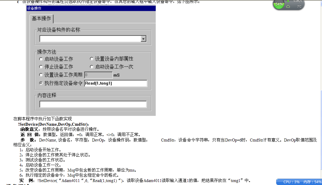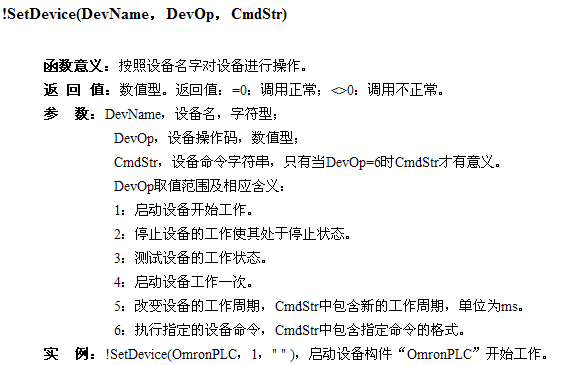 !SetDevice(DevName,DevOp,CmdStr)中的CMDSTR 能執行哪些命令?哪里能找到相關資料。謝謝!