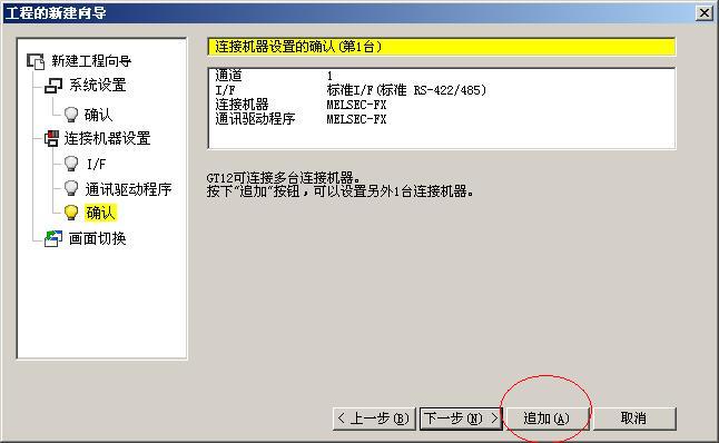 以GT12為例,設置連接機器的時候,第一臺設置用RS-422。設置完成后點追加,第二臺用RS-232