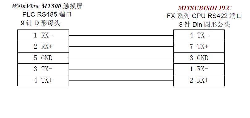 說明書上只有MT500與三菱FX系列PLC的連結(jié)方法,請(qǐng)教各位朋友:MT6050i與FX3G通信線的連結(jié)方法是圖上這樣嗎?供應(yīng)商給我的通信線是5-5的,其它一樣。但是PLC與MT6050i通上電后,屏上總是顯示“PLC NO RESPONSE",如果線沒有問題,PLC和MT6050i兩邊要怎么正確設(shè)置?謝謝大家?