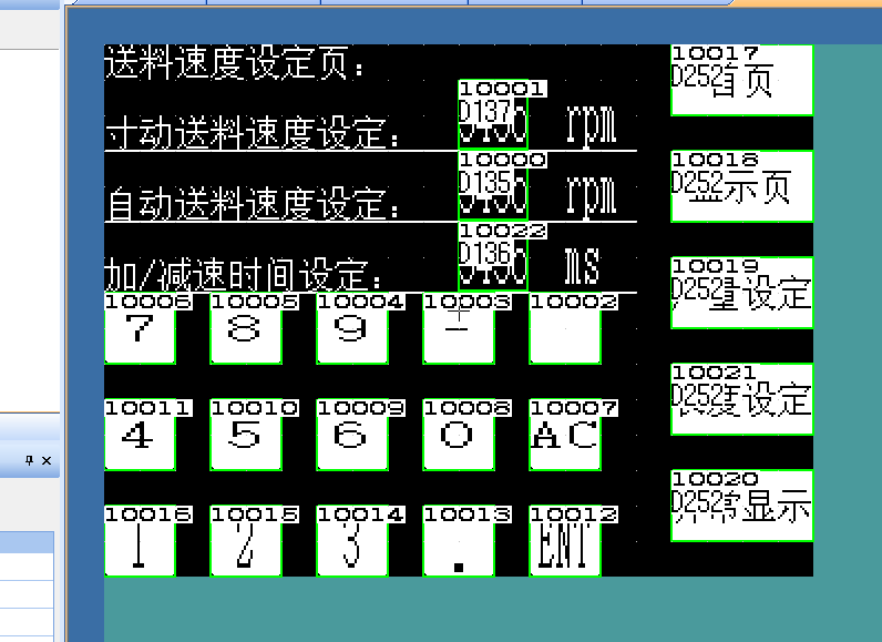 是啊, 有時(shí)候就只有一兩個(gè)變量設(shè)定的,空出來(lái)太多地方了,所以 我想以前用三菱的時(shí)候可以把數(shù)字鍵設(shè)在外面,就像圖片上面那樣子的,當(dāng)你想輸入數(shù)據(jù)的時(shí)候 只要點(diǎn)一下變量就可以直接從下面的鍵盤上面輸入了,請(qǐng)問你會(huì)這樣設(shè)定嗎?還麻煩你給我多多指點(diǎn)一下啊! 先謝了!