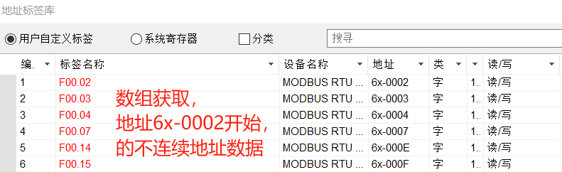 2、如下圖中,序號1.2.3.4.5.6。觸摸屏讀取對應RS485地址內容,然后轉換成數組。