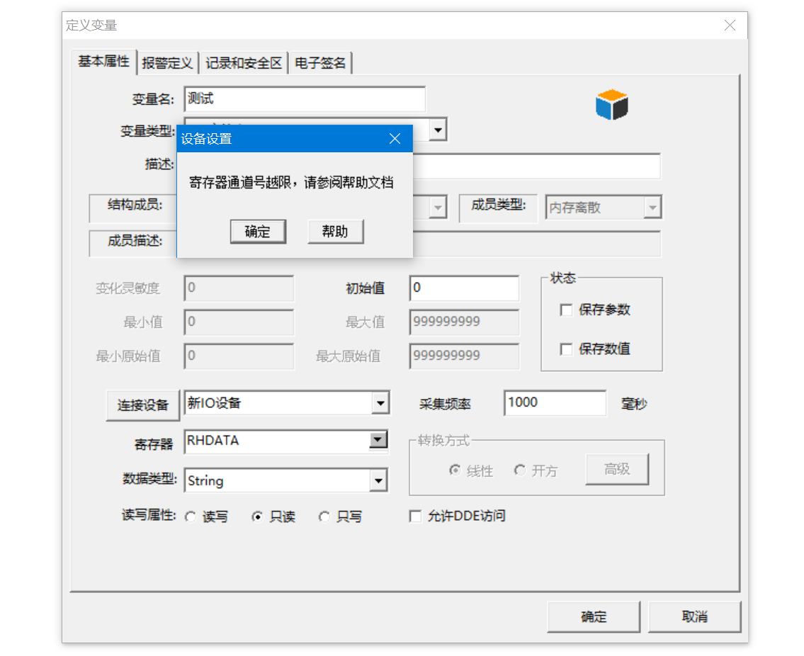 組態王使用串口發送驅動和掃碼槍通訊,在設置變量的時候提示寄存器通道號越限,大神們這個怎么解決