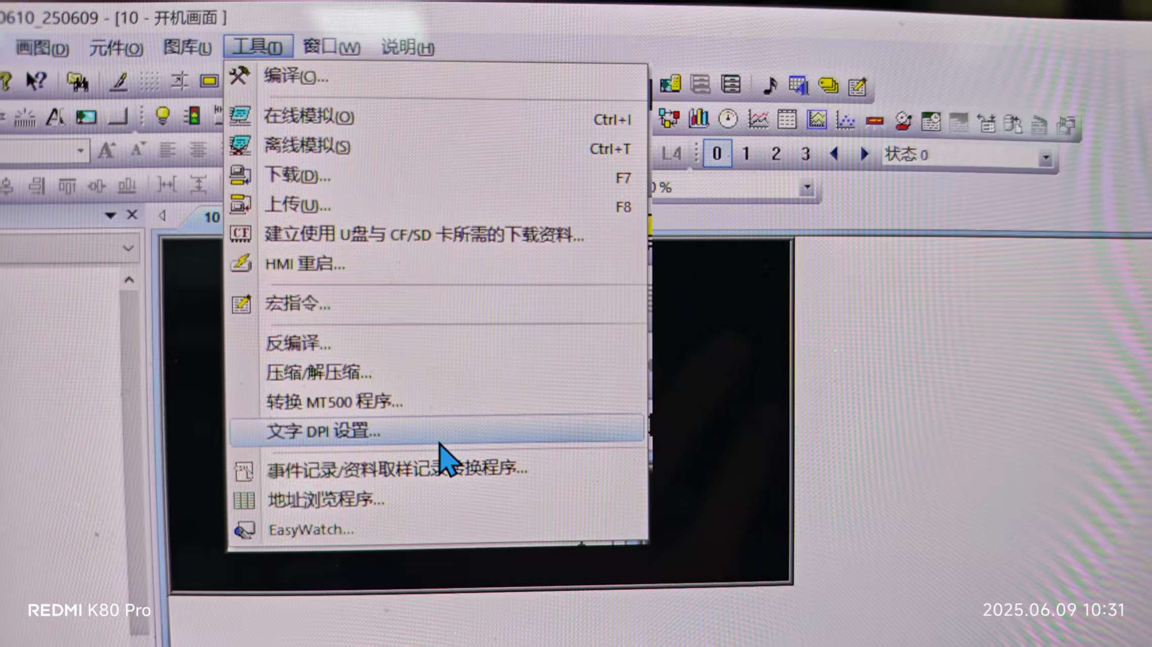 威綸TK6050iP 前幾年的老程序,再打開會顯示字體變大,每個元件都需要修改,最終找到原因可能是原來的電腦和現在的電腦分辨率不同有影響,選擇軟件 工具——文字DPI設置,修改為 選擇原來的PC DPI設置100%,完美解決問題。