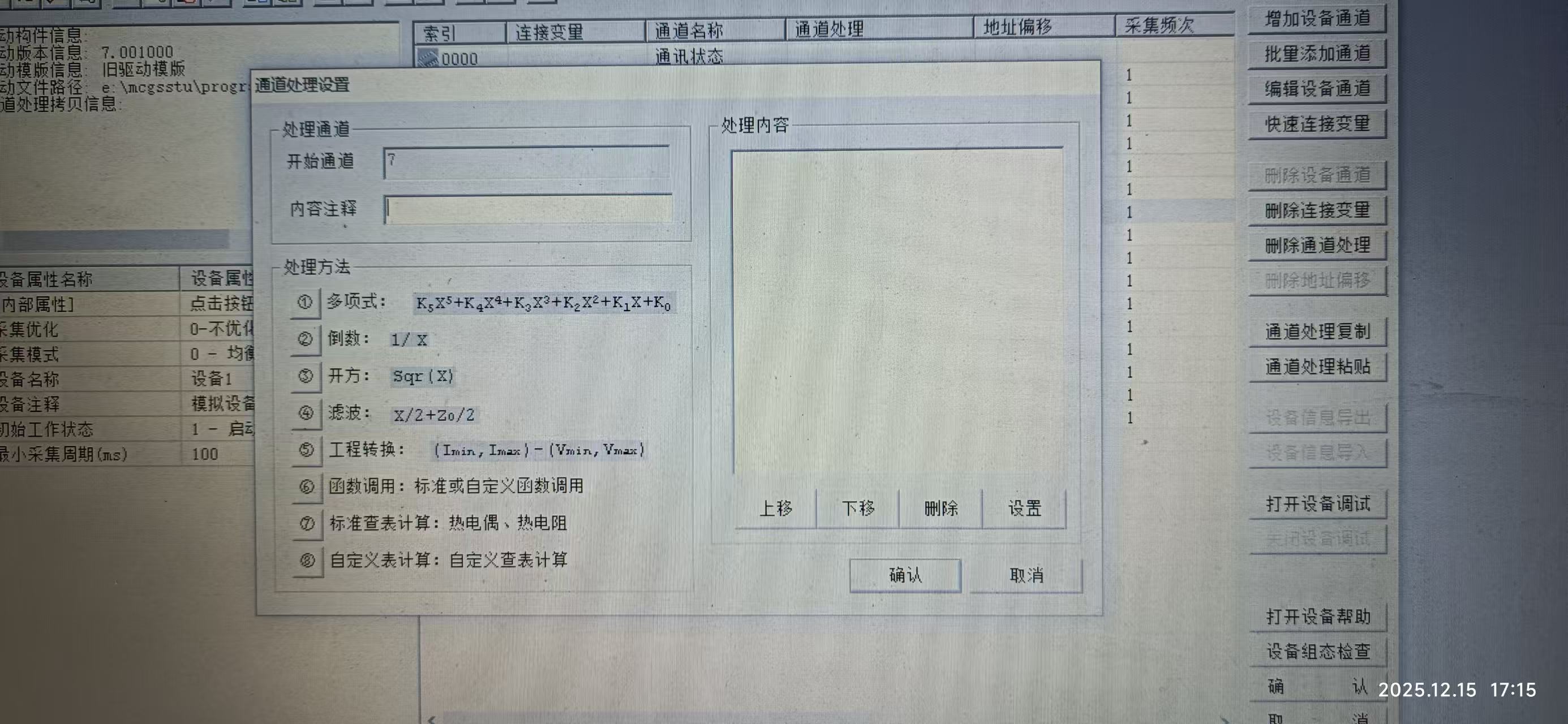 本人在使用昆侖通態(tài)軟件時(shí)碰到一個(gè)問(wèn)題,特向大師們請(qǐng)教: 如圖片所示,本人在進(jìn)行通道處理時(shí),點(diǎn)進(jìn)多項(xiàng)式,在WIN10下無(wú)法彈出K1K0等需要設(shè)置的參數(shù),在虛擬機(jī)上可以彈出,特請(qǐng)大師指點(diǎn)迷津。 |